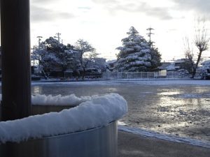 大人は雪が積もると、いろいろ心配になってしまいますが、子どもたちは大喜びでした。運動場は、子どもたちが登校する時刻には、少し解け始めてぬかるんでいたので、いろいろな学年が、朝の会を終えて『緑道公園』へと出かけていきました。柳津小学校は本当に恵まれた環境ですよね。