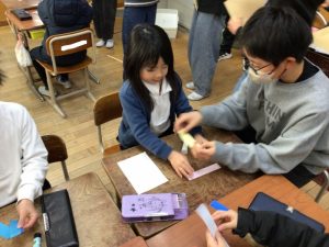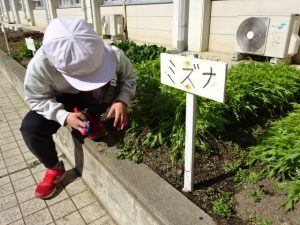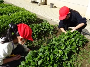 2年生は、中庭で育ててきた冬野菜を収穫していました。ミズナ、ホウレンソウ、チンゲンサイが立派に育っていて、嬉しそうに収穫していました。収穫した野菜は、きれいに洗って、袋に詰めて各自が持ち帰るようです。それぞれのご家庭で、おいしく食べてくださいね。