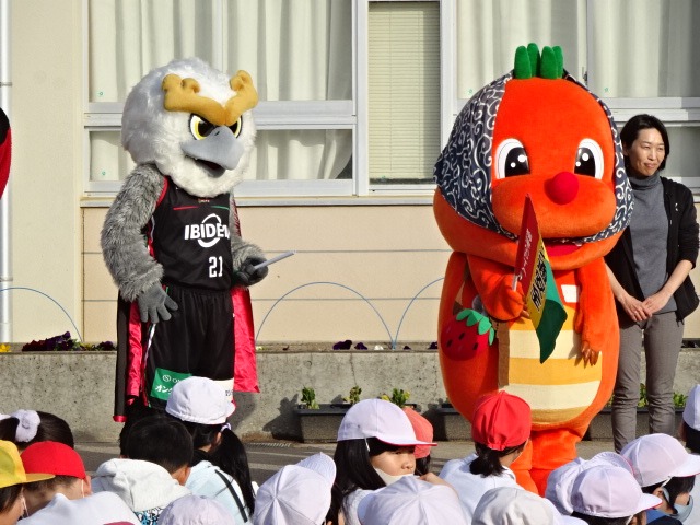 警察官の方々も、逃げ回る子どもたちを一生懸命に追いかけてくださいました。捕まった子どもたちは、大きな声で「助けてーっ!」と叫び、その声が届いた審判の方に旗を振っていただけたら復活することができます。今日は、岐阜スゥープスのダニエル選手とマスコットキャラクターのスパーキーも来てくれました。