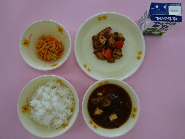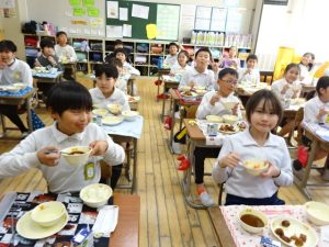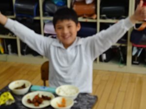 3年生の教室に行くと、「にんじんおいしい!大好き!!」「ポーク南蛮、おいしすぎてタブレットで写真撮っちゃった!」と教えてくれました。とっても、おいしかったです!!!