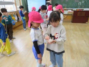 1年生は、やないづこども園の子どもたちと交流がありました。会を重ねるごとに、1年生の子どもたちも伝えたいことを分かりやすく伝える方法が分かり、とってもスムーズに交流を進めていました。